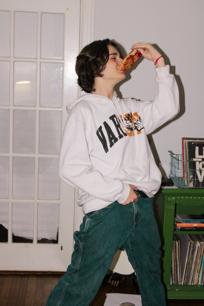 We ate pizza on paper towels and Julia tried communicating with Laila’s cat, Pheobe, and ultimately ended up seeming a little crazy. We listened to music and Julia and Laila danced around.
